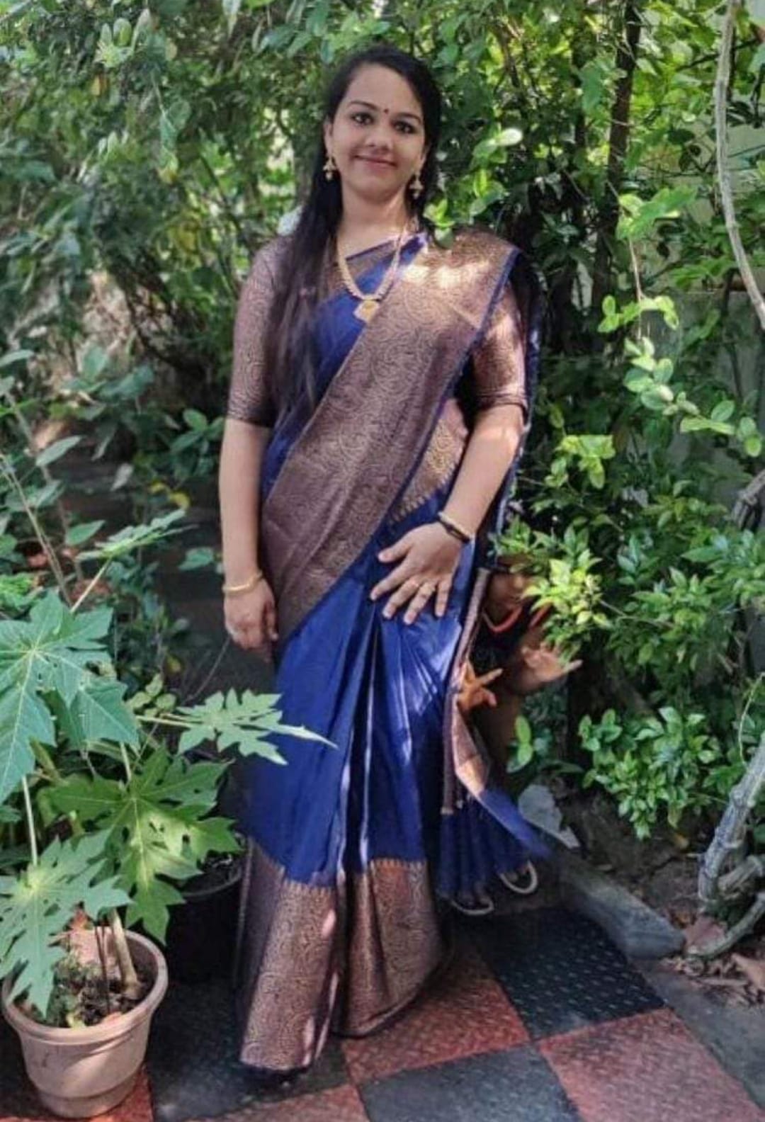 This is a royal blue banarasi warm silk saree. It has a wide zari-woven border and intricately beautiful pallu. The entire body of the saree has beautiful zari woven motifs making it a perfect saree for all occasions. It comes with a beautiful matching blouse piece.